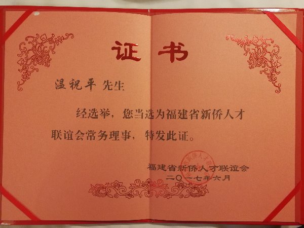 快普董事長(zhǎng)溫祝平作為中國(guó)企業(yè)管理專家應(yīng)邀出席會(huì)議,并當(dāng)選為福建省新僑人才聯(lián)誼會(huì)常務(wù)理事。